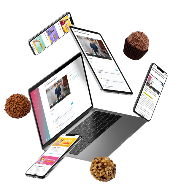 Para facilitar seu aprendizado, esse curso foi gravado com 3 câmeras, para você ter a visão como se estivesse participando de um curso presencial e aprender o ponto correto de todos os brigadeiros que a Ana ensina.
